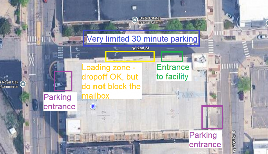 If you’re visiting the outpost, please read the information below to ensure that you can find us, and please observe the local traffic and parking patterns to ensure that we’re gracious neighbors. The door to the facility is on 2nd Street, across from the post office, and right behind the USPS mail drop box. 2nd Street is one-way in front of our facility. There are a couple, but not many, 30 minute parking spots in front of the post office. The side of the street in front our facility is marked as a no parking loading zone, and you can use this area to drop your student (or robot or equipment) off, but please pull up well past the post office drop box, so there is chance of you blocking it, or even for someone else to be concerned that you might be. You can also park in the structure itself; this is free for two hours, and 75 cents an hour thereafter. It’s free all day on Sundays. There’s also metered street parking around the area; if you use this, make sure to pay immediately as the enforcement mechanisms are automated.